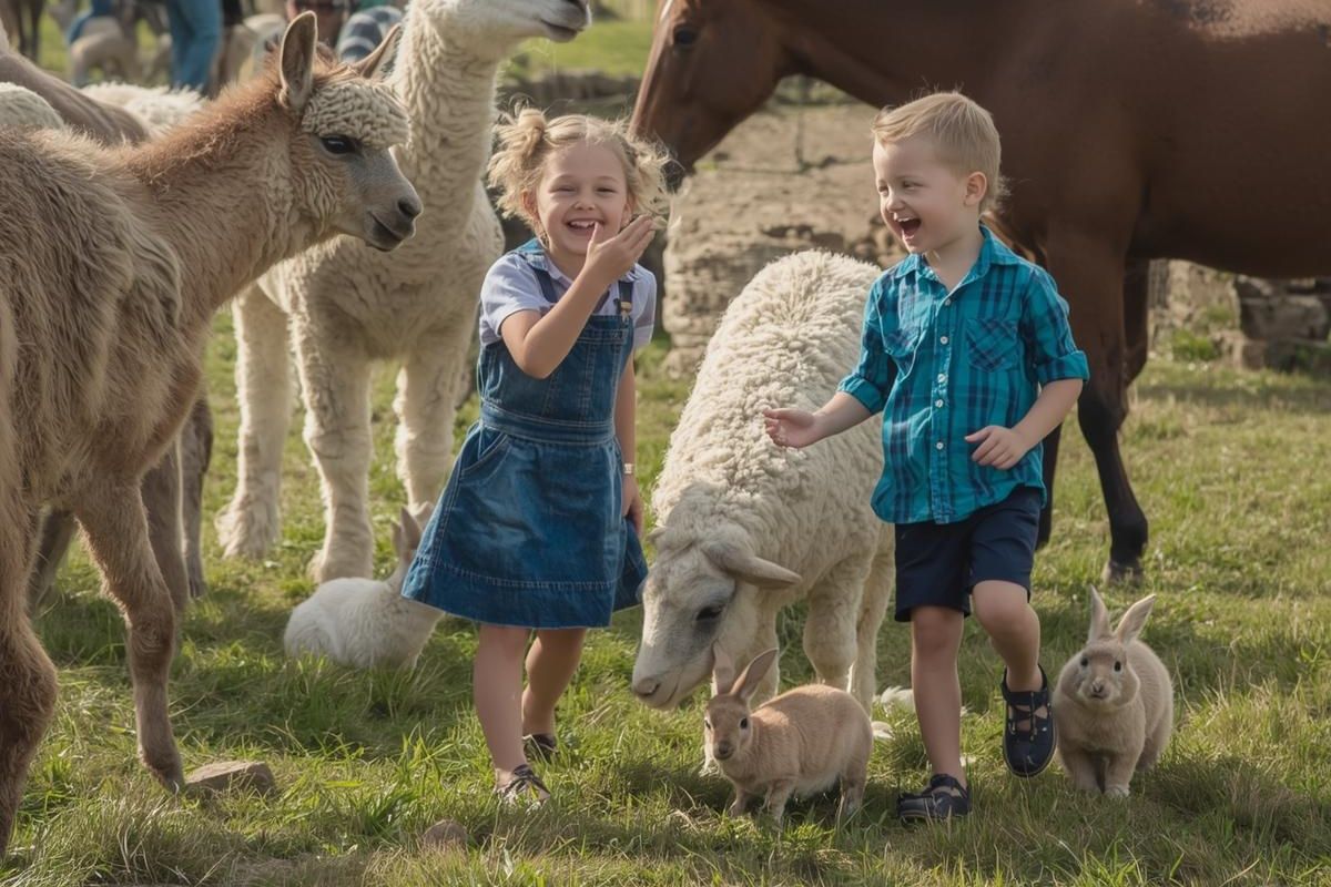 Zwischen Alpakas, Lamas, Schafen, Kaninchen, Hühnern und Pferden tauchen sie in das richtige Bauernhofleben ein und dürfen selbst mit anpacken.