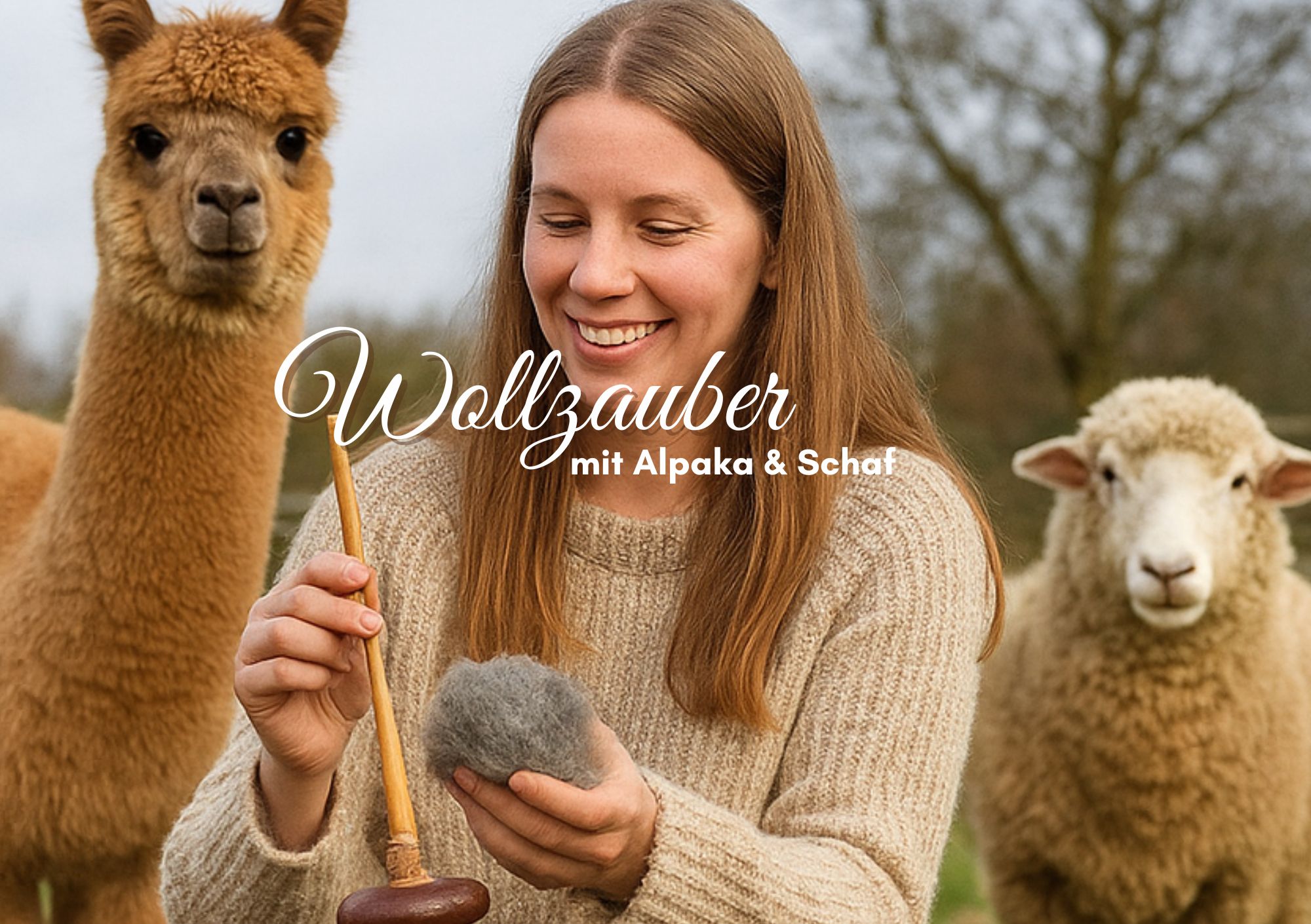 Erlebe Alpakas und Schafe hautnah, filze eigene Kunstwerke und probiere das Spinnrad aus.